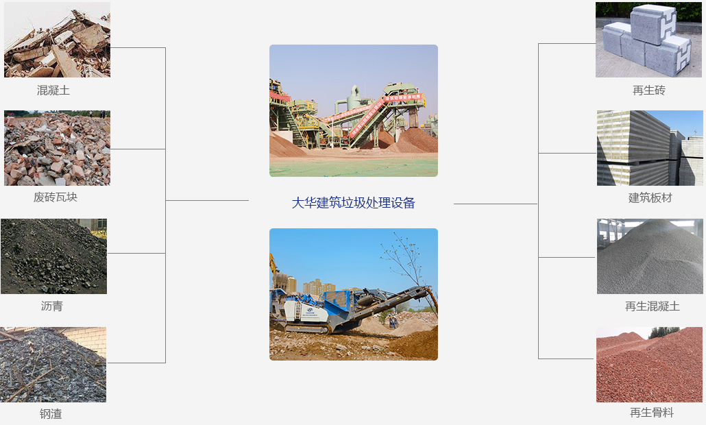 洛陽大華重型機械有限公司的小模塊建筑垃圾生產(chǎn)線,是經(jīng)過破碎、分選、篩分流程后,最后將其消化為不同粒徑的砂石再生骨料,這種生產(chǎn)線每小時可吃掉建筑垃圾80多噸,消化后的建筑垃圾可用于各類混凝土砌塊、地面磚,從而實現(xiàn)循環(huán)利用。