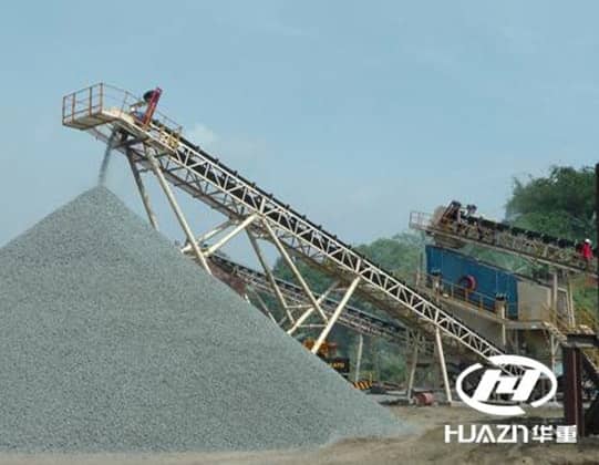 該生產(chǎn)線的破碎過(guò)程:顎式破碎機(jī)中進(jìn)行簡(jiǎn)單的粗碎,然后進(jìn)入圓錐破碎機(jī)中進(jìn)行細(xì)碎,最后進(jìn)入振動(dòng)篩進(jìn)行篩分。合格的石料經(jīng)由皮帶輸送機(jī)進(jìn)入洗選后進(jìn)入成品區(qū),不合格的石料再次進(jìn)入圓錐破碎機(jī)進(jìn)行破碎,從而形成閉路循環(huán),保證石料的質(zhì)量規(guī)格。最后破碎物料顆粒三種規(guī)格 0-5 5-16 16-31.5。