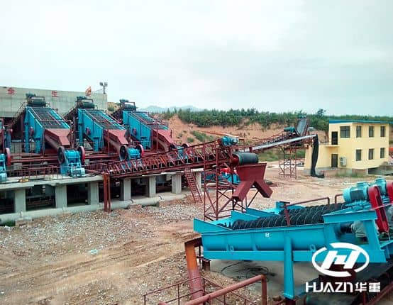 該系統(tǒng)位于陜西境內(nèi),系統(tǒng)以生產(chǎn)建筑用砂石骨料為主,系統(tǒng)設(shè)計(jì)規(guī)模為1200t/h。該系統(tǒng)由我公司實(shí)施工藝流程設(shè)計(jì),主要設(shè)備制造,基礎(chǔ)施工設(shè)計(jì),系統(tǒng)指導(dǎo)安裝,調(diào)試培訓(xùn),交付運(yùn)行。破碎物料為開挖天然礫石料,且泥土含量較高,為了提高成品粒度的品質(zhì)、潔凈程度,該系統(tǒng)設(shè)計(jì)時(shí),著重考慮了系統(tǒng)的篩分、水洗、脫泥工藝,設(shè)備配置為2YKRH2460重型篩4臺,ASD3625顎式破碎機(jī)4臺,HPY300圓錐破碎機(jī)4臺、3YKRH2473重型篩4臺,2XL1118洗石機(jī)2臺,DXS3.6斗輪洗砂機(jī)4臺,SH800細(xì)砂回收4臺等。