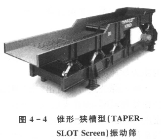 弧形篩(圖4—2)篩面呈弧形,待篩分物料制成料漿。料漿含水約為30%。 從弧形篩頂部結(jié)入。在篩面上,由于料漿受重力、離心力及篩條對(duì)料漿的阻力作 用,使料漿緊貼篩面流動(dòng)。緊貼篩面的下層料漿運(yùn)動(dòng)速度低,細(xì)粒和液體從篩縫 中落入篩下,大顆粒從篩面末端排出。一般通過篩縫的顆粒尺寸為篩縫寬度的 1/4,所以這種篩不易發(fā)生堵塞,但篩分效率低。