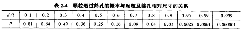 由式2-18可見,顆粒直徑愈接近于篩孔尺寸,P值愈小,當d = L時,P = 0。