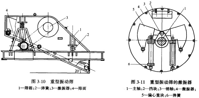 重型振動(dòng)篩在選礦廠主要用于中碎之前作預(yù)先篩分設(shè)備,代替容易堵塞的固定條篩。此外, 也可作為含泥多的大塊物料的洗礦設(shè)備。