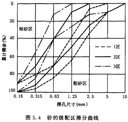 一般認為,處于級配曲線2區(qū)的砂,其粗細適中,級配較好。1區(qū)的砂含粗砂顆粒較多,屬于隨砂,其保水性差。3區(qū)的砂細砂顆粒多,用其配制的混凝土粘聚性大,保水性能好,但干縮性大,容易產生微裂縫。