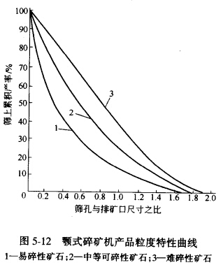 以下各種碎礦機(jī)產(chǎn)物的粒度特性曲線,均用相對(duì)粒度表示橫坐標(biāo),其關(guān)系與此處相同。