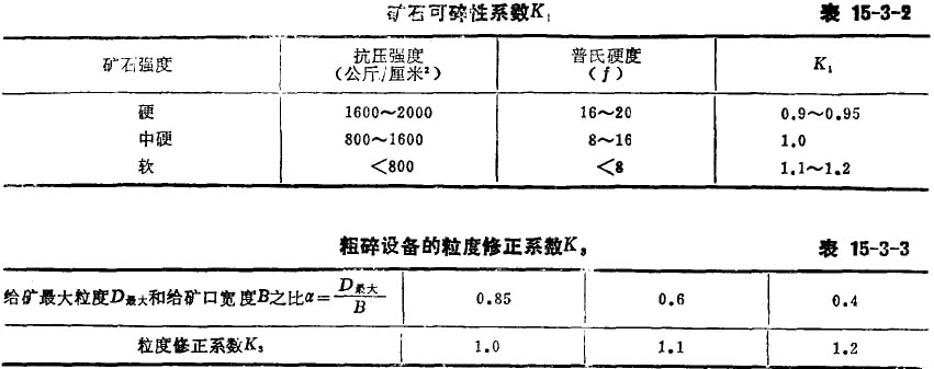 K1——礦石可碎性系數(shù)(表15-3-2);