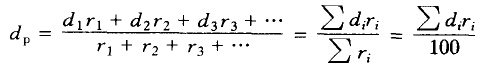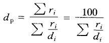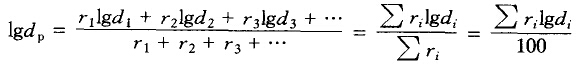 (2)寬級(jí)別混合物料的平均粒度。對(duì)于這種混合物料,可首先進(jìn)行篩析,求出粒皮組成后采用統(tǒng)計(jì)學(xué)求平均值的方法計(jì)算其平均直徑。如已知混合物料中各窄粒級(jí)的平均直徑分別為d1、d2、d3、…,其產(chǎn)率分別為r1、r2、r3、…,則該物料的平均粒度可以下列三種方法計(jì)算