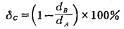 由上式可見,如果兩種礦物的機(jī)械強(qiáng)度σA及σB相同,它們的破碎概率WAP及WBP也相同,這時(shí)KP=0,即A、B兩種礦物混合磨碎時(shí)無選擇性可言。當(dāng)兩種礦物的機(jī)械強(qiáng)度σA及σB不等時(shí),WAP和WBP亦不等,這時(shí)K有一確定值,表示存在破碎的選擇性。顯然,K值愈大,破碎的選擇性愈大,K值愈小破碎的選擇性也愈小。但是,直接以K值大小來判斷選擇性破碎的程度在實(shí)際破碎工程應(yīng)用上目前還比較困難。由于發(fā)生選擇性破碎時(shí) 會(huì)使兩種礦物粒子存在粒度差,所以直接以粒度差的大小來判斷選擇性破碎程度大小可能更便于實(shí)際工程上的應(yīng)用。如果以δc表示相對(duì)粒度差,則由兩種礦物粒子的加權(quán)算術(shù)平均直徑dA及dB就可算出δc: