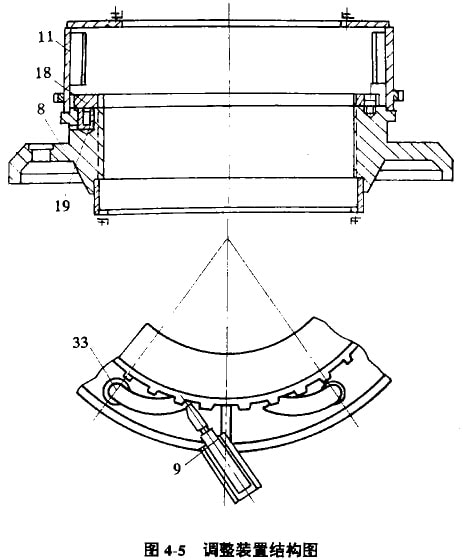 鋸齒形調(diào)整螺紋的潤滑是通過支承環(huán)側(cè)壁卜的注油孔定期向螺紋中壓入黃油。