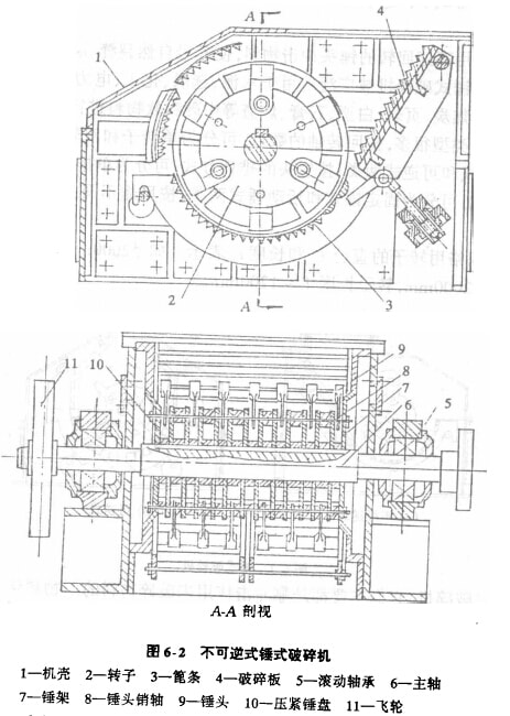 (1)不可逆式錘式破碎機的構(gòu)造