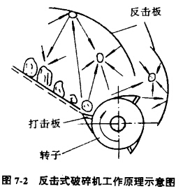 ⑤反擊式破碎機(jī)的構(gòu)造簡(jiǎn)單、質(zhì)量小,便于制造、成本低,操作和維修方便。