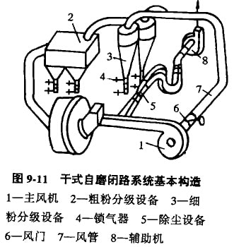 濕式自磨機(jī)和一般的球磨機(jī)、棒磨機(jī)一樣與濕式分級(jí)設(shè)備,如螺旋分級(jí)機(jī),振動(dòng)篩.旋流器等組成閉路循環(huán)系統(tǒng):而干式白磨機(jī)則與旋轉(zhuǎn)筒式磨煤機(jī)相似,其粉磨產(chǎn)品是利用風(fēng)力運(yùn)送出來(lái),然后分級(jí)回收,所以它有一套風(fēng)力運(yùn)送和分級(jí)系統(tǒng),這套風(fēng)力運(yùn)送分級(jí)系統(tǒng)采用負(fù)壓工作,因而管路系統(tǒng)的密封比較容易。