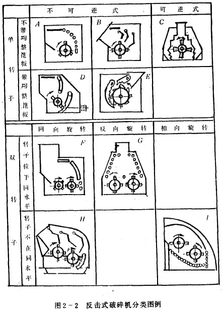 反擊式破碎順從結(jié)構(gòu)特征,可分為單轉(zhuǎn)子和雙轉(zhuǎn)子兩種類型,其詳細(xì)分類見圖2-2。