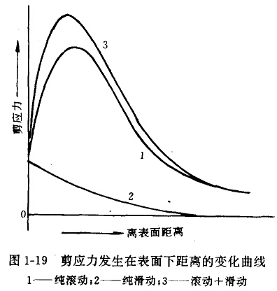 (1)裂紋起源于表面在滑動(dòng)摩擦或滾動(dòng)帶有滑動(dòng)摩擦?xí)r,待別是當(dāng)表面存有缺陷時(shí),裂紋就容易從表面開始。例如兩齒輪在接觸過程中,表面不僅有交變接觸壓應(yīng)力而且還有剪叨應(yīng)力。根抓赫茲的理論,最大壓應(yīng)力發(fā)生在表面上,而最大的剪應(yīng)力發(fā)生在離表面一定距離處。圖1-19為剪應(yīng)力發(fā)生在表面下距離變化曲線。在表面壓應(yīng)力和剪應(yīng)力反復(fù)作用一定周次之后,材料慶面就會(huì)產(chǎn)生局部的塑性變形相加工硬化,在漿些組織不均勻處,密易形成裂紋源,導(dǎo)致裂紋出現(xiàn)與擴(kuò)散。當(dāng)接觸表面存有潤(rùn)滑油且滾動(dòng)力。向與裂紋端部方向一致時(shí).波動(dòng)物體首先封住裂紋裂口處。(如圖1-20所示),裂紋中的潤(rùn)滑油被培在裂縫小,在接觸歷應(yīng)力作用下嚴(yán)生高壓油波,迫使裂紋向30°-45°角方向擴(kuò)展。當(dāng)裂紋向內(nèi)表面擴(kuò)展到一定深度都覽度時(shí),裂紋上部如同一懸臂梁承受交變彎肋應(yīng)力,最后因強(qiáng)度不足而折斷成金用磨屑,并留下麻點(diǎn)狀利落坑。