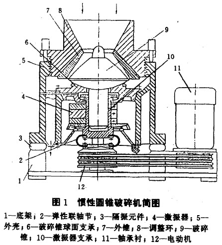 慣性圓錐破碎機(jī)的結(jié)構(gòu)如圖1所示。