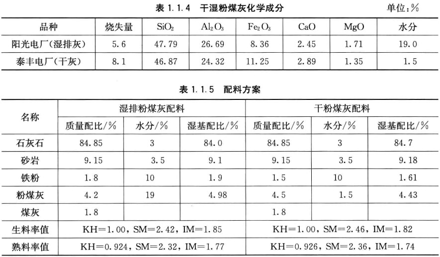 (2)原料配比的變化。根據(jù)原濕排灰的配料經(jīng)驗及干灰的化學組成,進行原料配料方案調(diào)整,見表1.1.5。