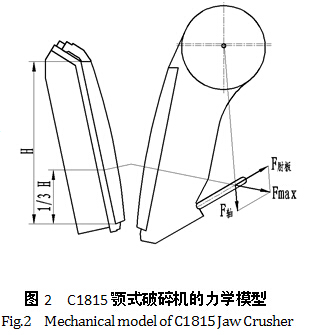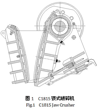 顎式破碎機(jī)一般用于粗碎各種礦石或巖石,特別是大型的礦山,首先就會(huì)選擇大型顎式破碎機(jī)。由于顎式破碎機(jī)具有結(jié)構(gòu)簡(jiǎn)單,工 作可靠,制造容易,維修方便等優(yōu)點(diǎn)[1],得到廣泛的應(yīng)用。在國(guó)內(nèi)開發(fā)制造大型顎式破碎機(jī)的廠家也寥寥無幾,在行業(yè)內(nèi)公認(rèn)是比 較難做的,所以很多廠家想做但又不敢涉足。2010年我公司開發(fā)C1815大型顎式破碎機(jī),也是當(dāng)時(shí)國(guó)內(nèi)最大的顎式破碎機(jī)。經(jīng)過研發(fā)制 造、應(yīng)用驗(yàn)證,實(shí)現(xiàn)了節(jié)能降耗的目的,顯著降低了用戶使用成本,同時(shí),也為下一步開發(fā)更大型號(hào)顎式破碎機(jī)奠定了基礎(chǔ)。