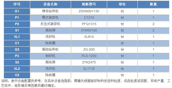 400t/h---石灰石(白云巖)類巖石的砂石骨料生產(chǎn)工藝設(shè)備配置表