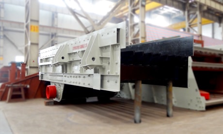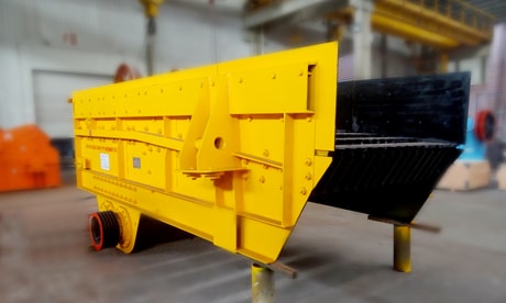 振動(dòng)給料機(jī)采用鋸齒形篦條梯級(jí)布置,不僅具有自掃功能,不易堵料,便于更換和調(diào)整間隙,壽命長,篩分效率高,安裝調(diào)整也非常便捷;兩段棒條組階梯高落差結(jié)構(gòu)設(shè)計(jì),能有效剔除細(xì)料免于重復(fù)破碎,大大降低初段破碎機(jī)負(fù)荷。