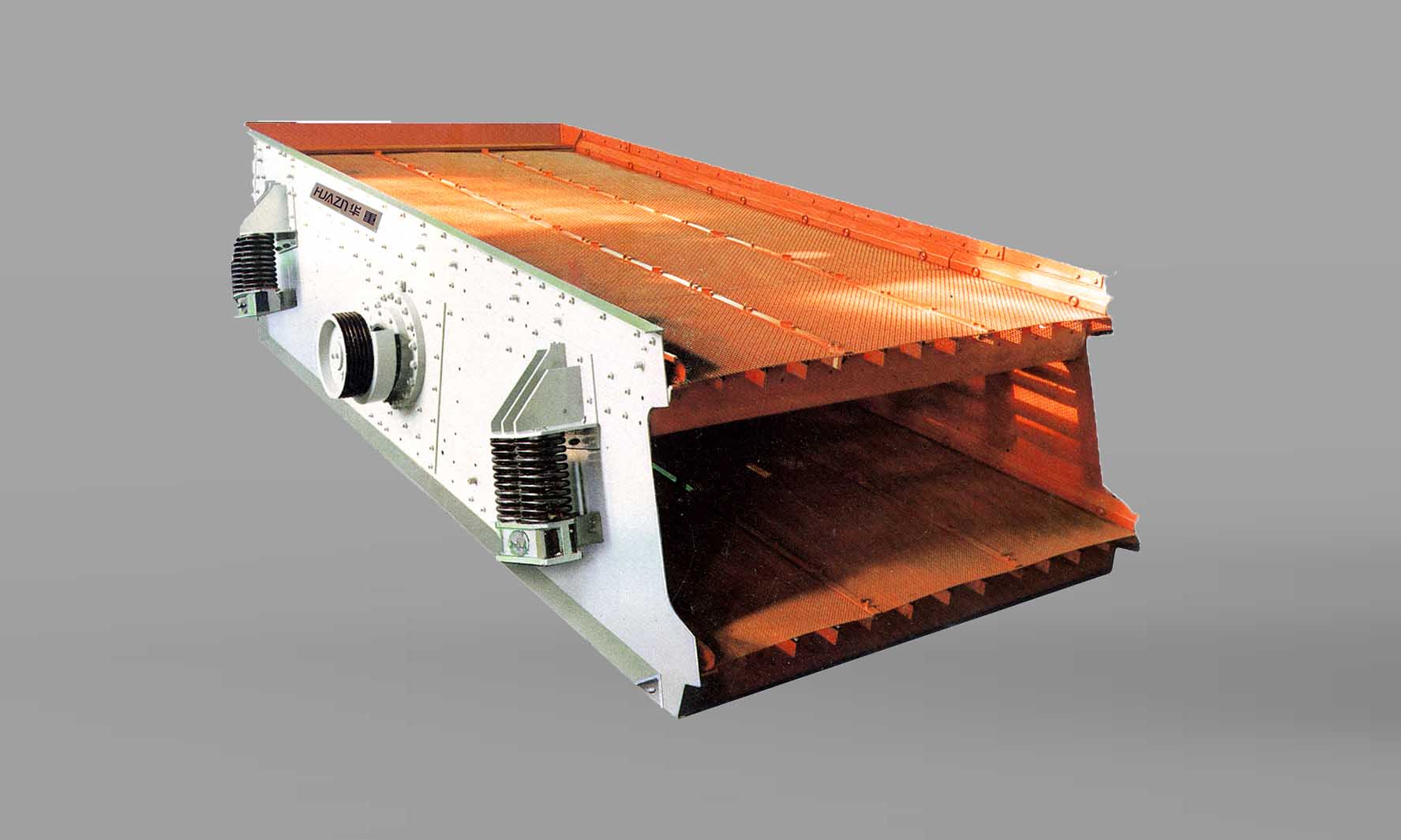 采用篩子橫梁與篩箱采用高強度螺栓,結構簡單,維修方便快捷;振動篩采用塊偏心作為激振力,激振力強、電耗低、噪音小。